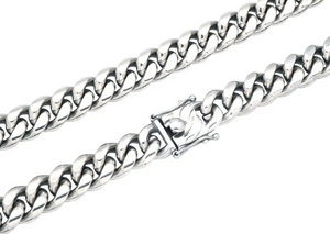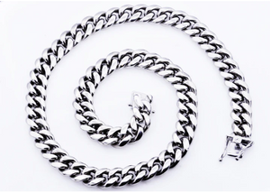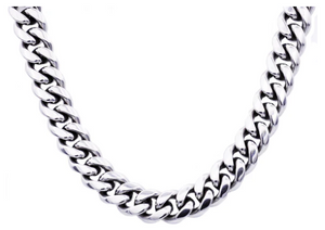 The 24" stainless steel Cuban link chain is a robust and stylish accessory, perfect for making a bold fashion statement. Crafted from high-quality stainless steel, this chain features interlocking links that form a sleek, polished appearance. The Cuban link design is both timeless and versatile, suitable for various occasions. Its 24-inch length ensures a comfortable fit, draping elegantly around the neck. The chain is secured with a reliable box clasp, providing both ease of use and added security. This piece combines durability with sophisticated style, making it a must-have addition to any jewelry collection.