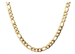 The 24" Men's Gold Stainless Steel Figaro Link Chain is a stylish and sophisticated accessory for any occasion. Made from durable stainless steel and finished with a luxurious gold plating, this chain features the distinctive Figaro link pattern, alternating between short and elongated links for a unique and elegant look. Its 24-inch length provides a comfortable fit, draping gracefully around the neck. Perfect for adding a touch of class to both casual and formal outfits, this chain is a versatile addition to any man's jewelry collection.