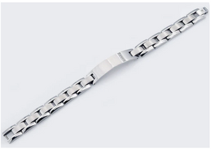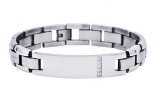 The 8-inch stainless steel ID bracelet is a perfect blend of personalization and elegance. Made from durable stainless steel, this bracelet features a sleek, engravable plate for adding a custom touch, such as a name or meaningful message. Enhanced with five sparkling cubic zirconia stones, it offers a hint of glamour. The bracelet's design combines robustness with a refined look, making it suitable for everyday wear or special occasions. A secure clasp ensures a comfortable fit, making this piece both practical and stylish.