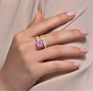 Lavish and sophisticated. This stunning pink and yellow bypass ring features Lafonn's canary, pink, and clear simulated diamonds. The ring is in sterling silver bonded with platinum and yellow- and rose-gold-plated sterling silver.