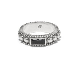 The Pretty Tough Gem ring draws inspiration from jewels of the Byzantine Empire and a mosaic portrait of Theodora, a Byzantine Empress. Modern lines meet ancient artisanal beauty in a refined little treasure crafted with granulation and inlaid with a hand-set rectangular stone. Perfect worn alone or incorporate into your stack to make a statement.