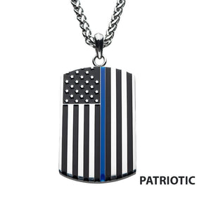 Stainless Steel with Thin Blue Line American Flag Police Officer Military Style Dog Tag Enamel Pendant with Steel Wheat Chain. 24 inch long. Pendant: 25mm (W) x 40mm (H) x 2.4mm (THK)